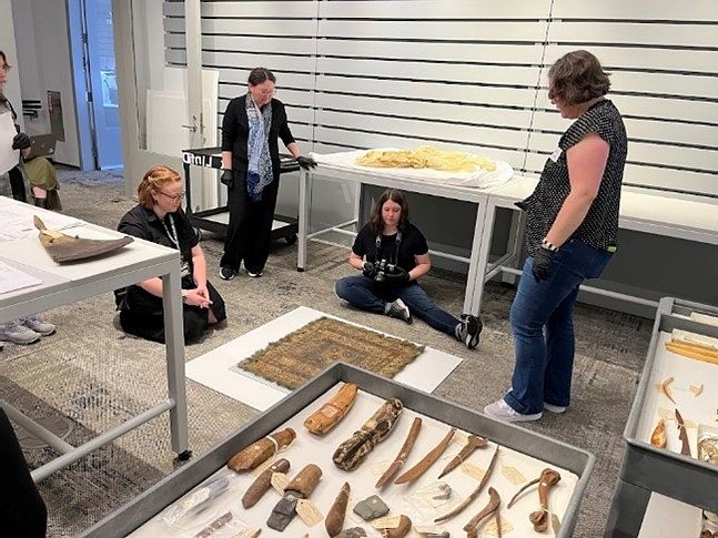 It is a new week at a new museum! Everyone had a wonderful time in Milwaukee, but we are excited for the next part of the trip. We started the new journey on Monday morning at the Hood Museum of Art in New Hampshire. The day began with quick introductions and shortly after we started setting up our stations. Brennan, Jorge, and Travis have their own room for structured light scanning as the blue light projected onto the pieces we are scanning works better in the dark. Lily, Peyton, Alex, Addison and I have our own room for capturing 2D photos and photos for photogrammetry. We were able to use our experience from Milwaukee to decide what works and does not work when setting up our stations. Once we were situated, we headed to the room where the collection pieces were placed for us to learn about the heritage pieces. After a quick break for lunch, we started preparing for the meeting with Knowledge Holders from the Bering Strait region. With the help from the staff at the Hood Museum of Art, we obtained an efficient system for presenting the items. The meeting lasted two hours, where Knowledge Holders gave an insight on what they would like to see 3D modeled. They also shared their knowledge of what the items we are working with might have been used for. It was a busy and exciting first day and we are looking forward to what the week has in store for us!