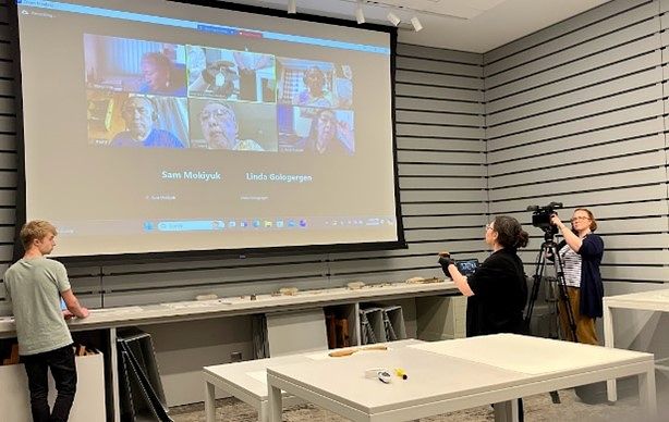 Introductions, setting up, and the workshop only took us halfway through the day’s agenda. The second half consisted of providing an introductory overview of the museum’s collection to view over Zoom for the nine Kawerak Knowledge Holders. With their comments, insight, and guidance, we were able to identify items of interest for 3D modeling. This helped us with selecting our first future 3D models, and we also discussed heritage item groups/themes to search for in the larger collection that we did not have the ability to display in today’s meeting. With our first priority items tagged, we packed up our laptops and got ready to start modeling the following day.