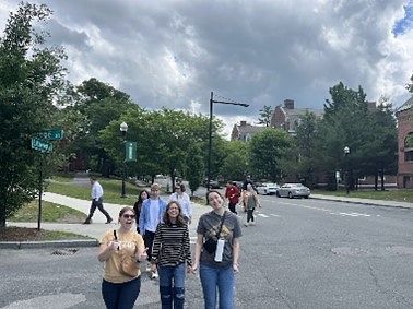 Research team walking to downtown Hanover from the Hood Museum to have lunch.