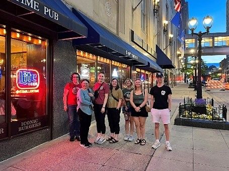 Brennan, Addison, Lisa and I grouped together for our free day. After the bus tour we headed toward the Historic German part of town. We ate at a restaurant called Copper, and following a delicious meal, we walked over to the Milwaukee City Library. The beautiful architecture of the building offered a nice shelter from the rain. At the Milwaukee Public Library Lisa asked to see special collections, and they were able to show us different maps, including pictograph maps of Wisconsin and the United States, as well as a demographic map of Old Milwaukee.
