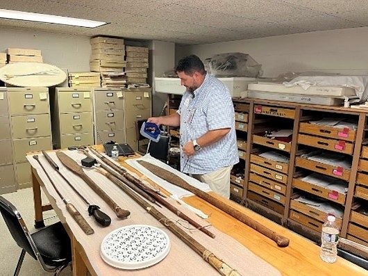 Structured light scanning requires patience, a keen attention to detail, and a steady hand. However, on this trip, I have learned that it also takes a great deal of resourcefulness. I was struggling to scan the interior of a harpoon weight when Jorge, a master of structured light from the University of South Florida, came into the room. He grabbed a paperclip from the desk, folded it into a stand, placed the item on it, winked at me, and walked out. Lo and behold, when I aimed the scanner at the harpoon weight, the angle created by the paperclip allowed me to scan the entirety of the interior.