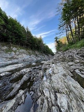 As a major in Geography, as are most research assistants on this trip, I can’t help but highlight the time we were able to take to enjoy the breathtaking Quechee Gorge State Park of Vermont. It was such a beautiful site that Brennan made the trip to the bottom twice! Though pictures tell a thousand words, I could tell a few million more. We arrived at the perfect time of day for the setting sun to peak through the canopy, amplifying the striking height of the pines. Due to construction, we weren’t able to get a bird’s eye view of the gorge, but from the bottom we got to observe the result of thousands of years of erosion. Hopping over the splitting stone and drinking in the muted roar of rushing water, we could enjoy the pure serenity in the air. Had it not been for the rest of our crew waiting on us, I’m not sure how long we could have spent down there.