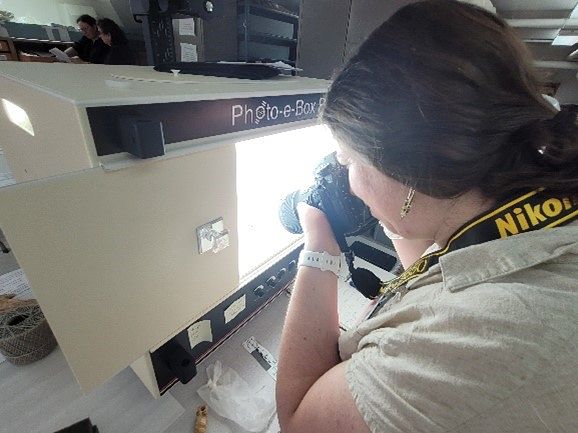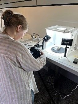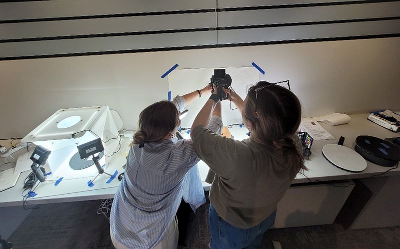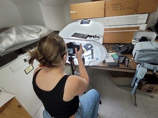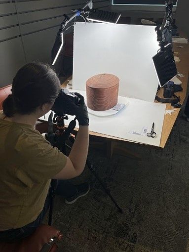 Lisa, Julie, Alex, Ashley, and Medeia capture detailed images of items that cannot be 3D modeled due to their fragile state and materials.