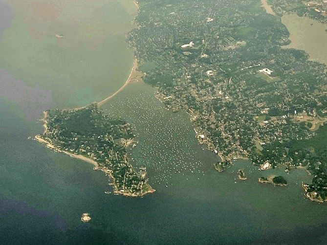 View of Boston Harbor from the plane.