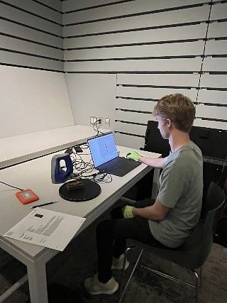 Addison, Brennan and Jorge working at their various stations. 2D photos and structured light scanning respectively.